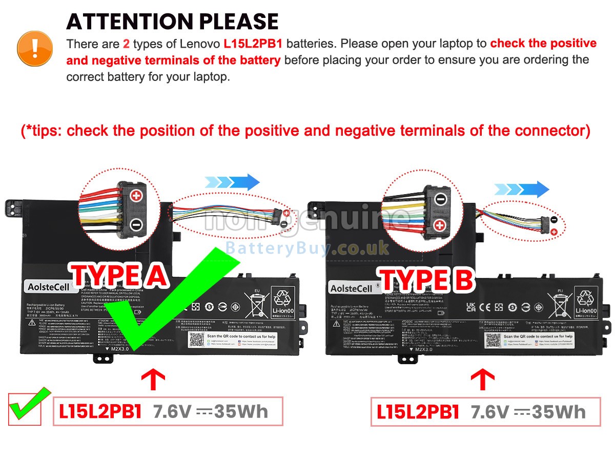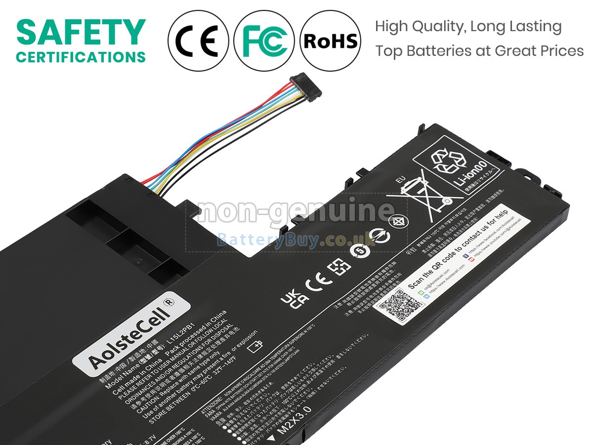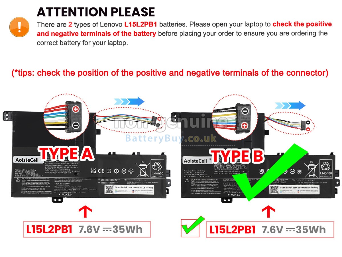 BatteryBuy.co.uk is your best choice of high quality Lenovo laptop batteries! The brand new 35Wh(2 cells) replacement Lenovo L15L2PB1(2ICP6/55/90) Li-Polymer battery is made with superior quality cells from Samsung, Panasonic and LG to ensure the best performance. Lenovo L15L2PB1(2ICP6/55/90) battery case is made of non-flammable and durable plastic, which is fire-retarded and non-perishable when dropped from low heights.
