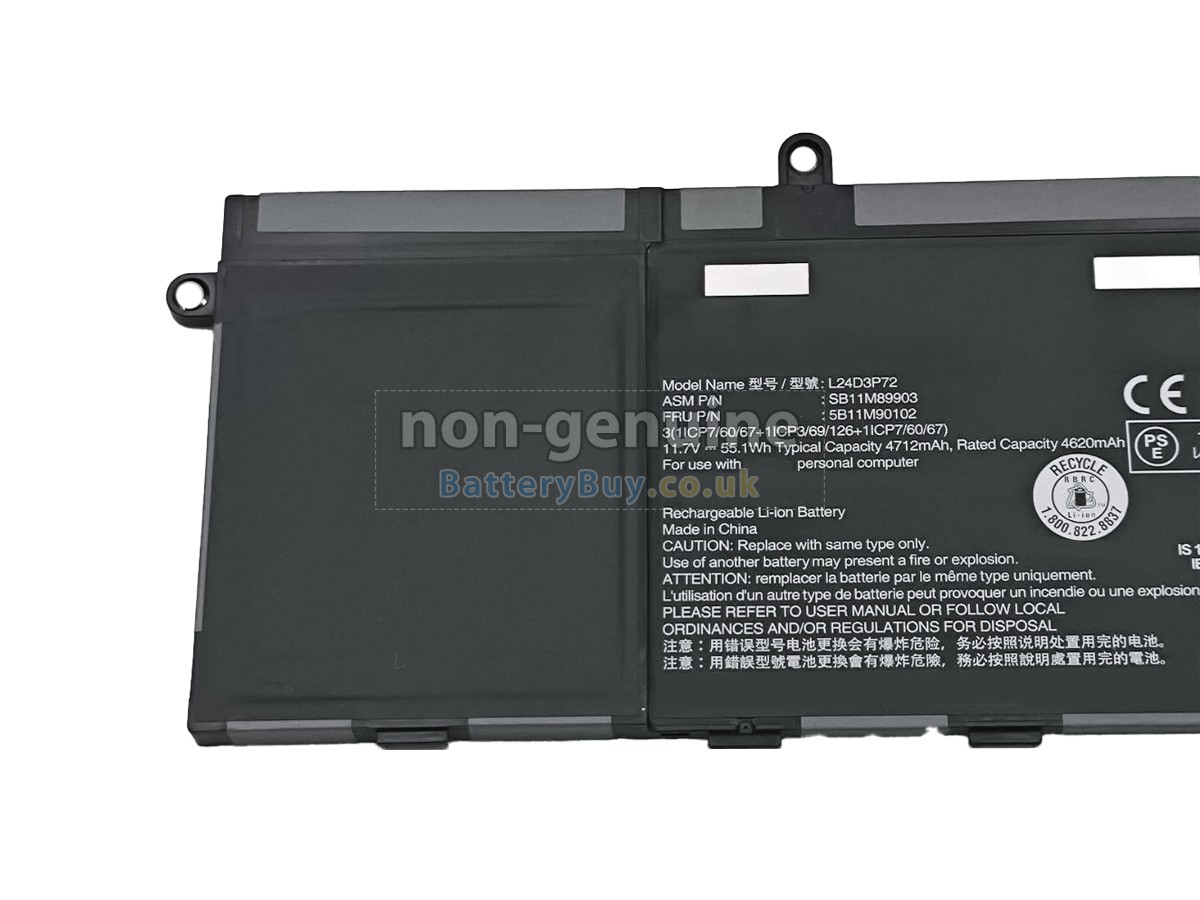 BatteryBuy.co.uk is your best choice of high quality Lenovo laptop batteries! The brand new 55.1Wh(6 cells) replacement Lenovo L24L3P71 Li-ion battery is made with superior quality cells from Samsung, Panasonic and LG to ensure the best performance. Lenovo L24L3P71 battery case is made of non-flammable and durable plastic, which is fire-retarded and non-perishable when dropped from low heights.