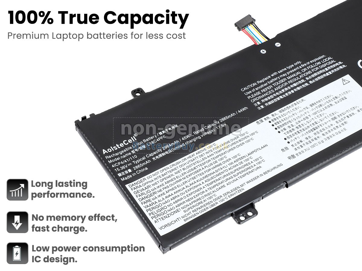 We are very strict with the safety requirements. Every our high-grade replacement battery for Lenovo THINKBOOK 13S-IWL-20RR003GML laptop has been tested to prove that they can match or surpass original Lenovo battery performance and be 100% compatible with Original Manufacturer Specifications. In compliance with international standards, they have obtained a series of rigorous safety certifications such as CE, UL, ROHS, ISO9001/9002. In general, this replacement Lenovo THINKBOOK 13S-IWL-20RR003GML battery can be charged/discharged up to more than 600 cycles.