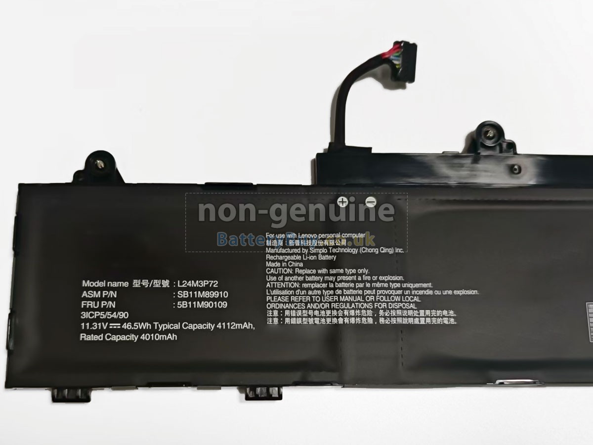 BatteryBuy.co.uk is your best choice of high quality Lenovo laptop batteries! The brand new 46.5Wh(3 cells) replacement Lenovo ThinkPad L16 GEN 2-21SA0038PB Li-ion battery is made with superior quality cells from Samsung, Panasonic and LG to ensure the best performance. Lenovo ThinkPad L16 GEN 2-21SA0038PB battery case is made of non-flammable and durable plastic, which is fire-retarded and non-perishable when dropped from low heights.