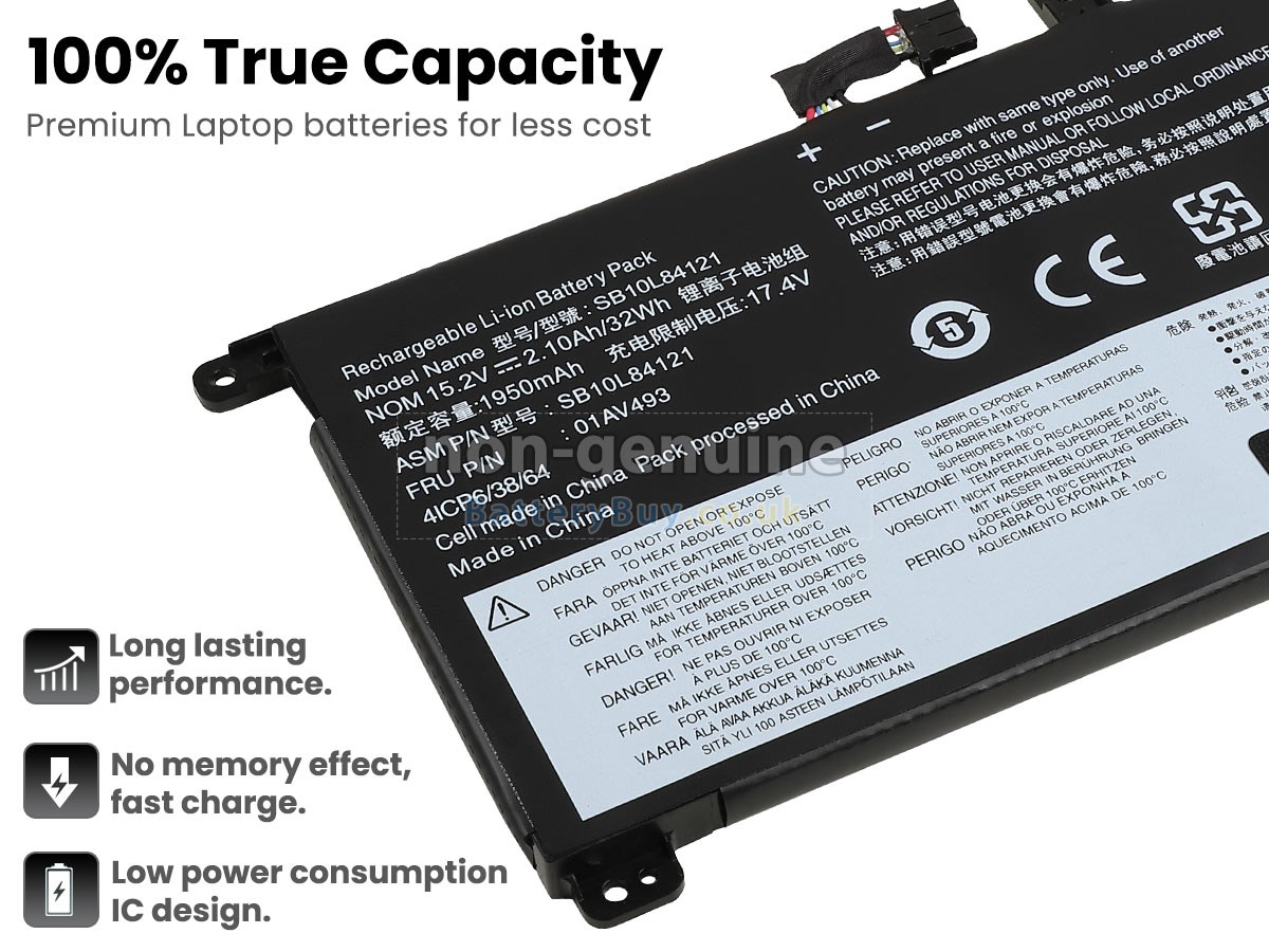 BatteryBuy.co.uk is your best choice of high quality Lenovo laptop batteries! The brand new 32Wh(4 cells) replacement Lenovo ThinkPad T570 20JW000GUS Li-Polymer battery is made with superior quality cells from Samsung, Panasonic and LG to ensure the best performance. Lenovo ThinkPad T570 20JW000GUS battery case is made of non-flammable and durable plastic, which is fire-retarded and non-perishable when dropped from low heights.
