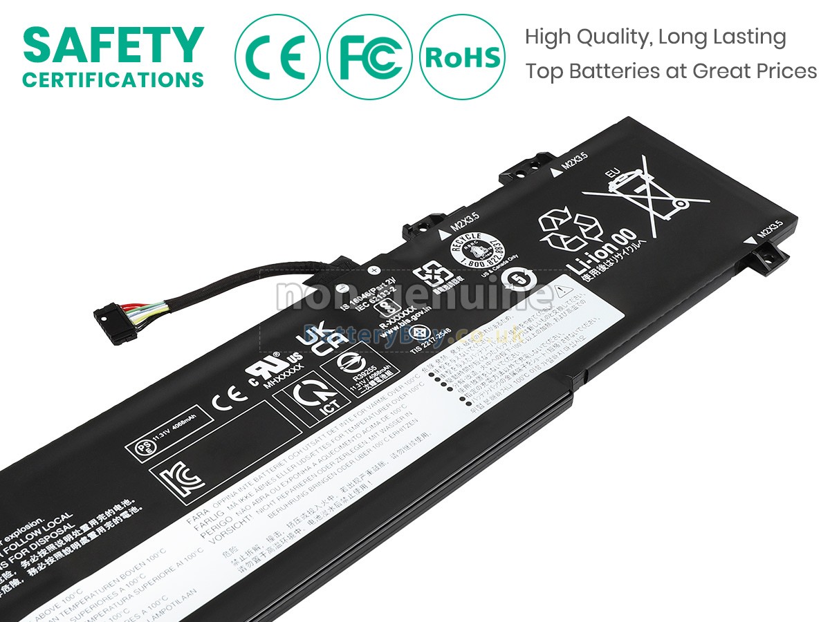 BatteryBuy.co.uk is your best choice of high quality Lenovo laptop batteries! The brand new 38Wh(2 cells) replacement Lenovo V14 G4 AMN-82YT00M4IV Li-Polymer battery is made with superior quality cells from Samsung, Panasonic and LG to ensure the best performance. Lenovo V14 G4 AMN-82YT00M4IV battery case is made of non-flammable and durable plastic, which is fire-retarded and non-perishable when dropped from low heights.