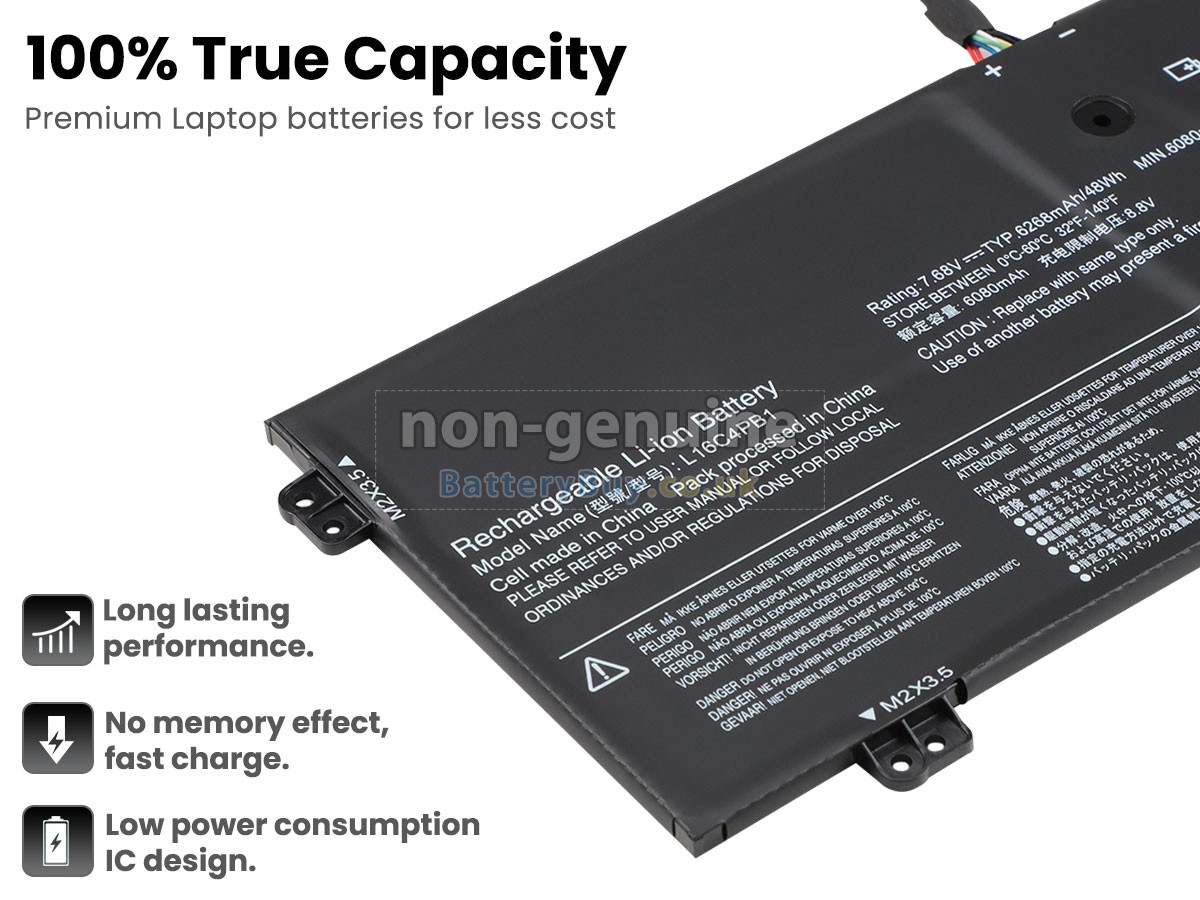 BatteryBuy.co.uk is your best choice of high quality Lenovo laptop batteries! The brand new 48Wh(4 cells) replacement Lenovo YOGA 730-13IWL-81JR009JMH Li-Polymer battery is made with superior quality cells from Samsung, Panasonic and LG to ensure the best performance. Lenovo YOGA 730-13IWL-81JR009JMH battery case is made of non-flammable and durable plastic, which is fire-retarded and non-perishable when dropped from low heights.