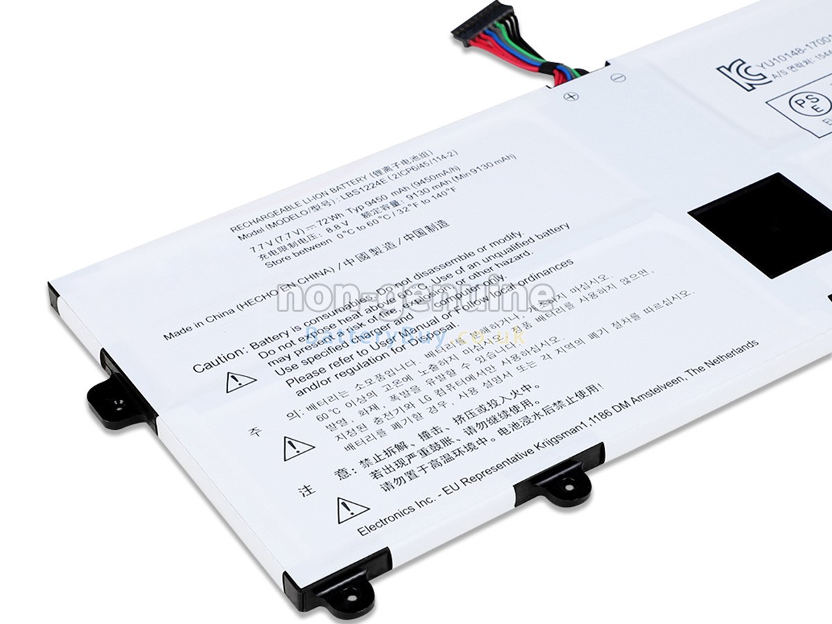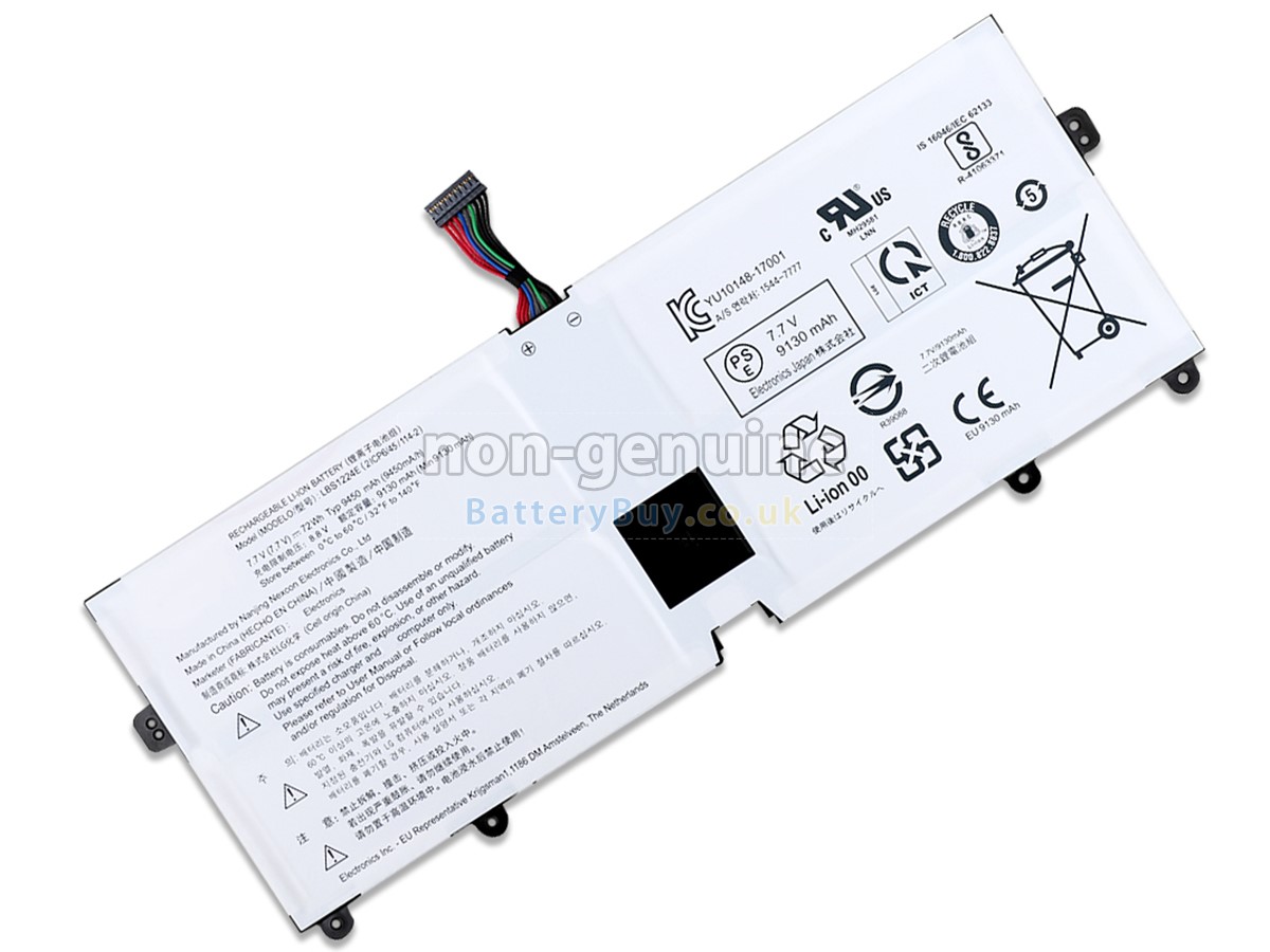 BatteryBuy.co.uk is your best choice of high quality LG laptop batteries! The brand new 72Wh(4 cells) replacement LG GRAM 13Z980 Li-Polymer battery is made with superior quality cells from Samsung, Panasonic and LG to ensure the best performance. LG GRAM 13Z980 battery case is made of non-flammable and durable plastic, which is fire-retarded and non-perishable when dropped from low heights.