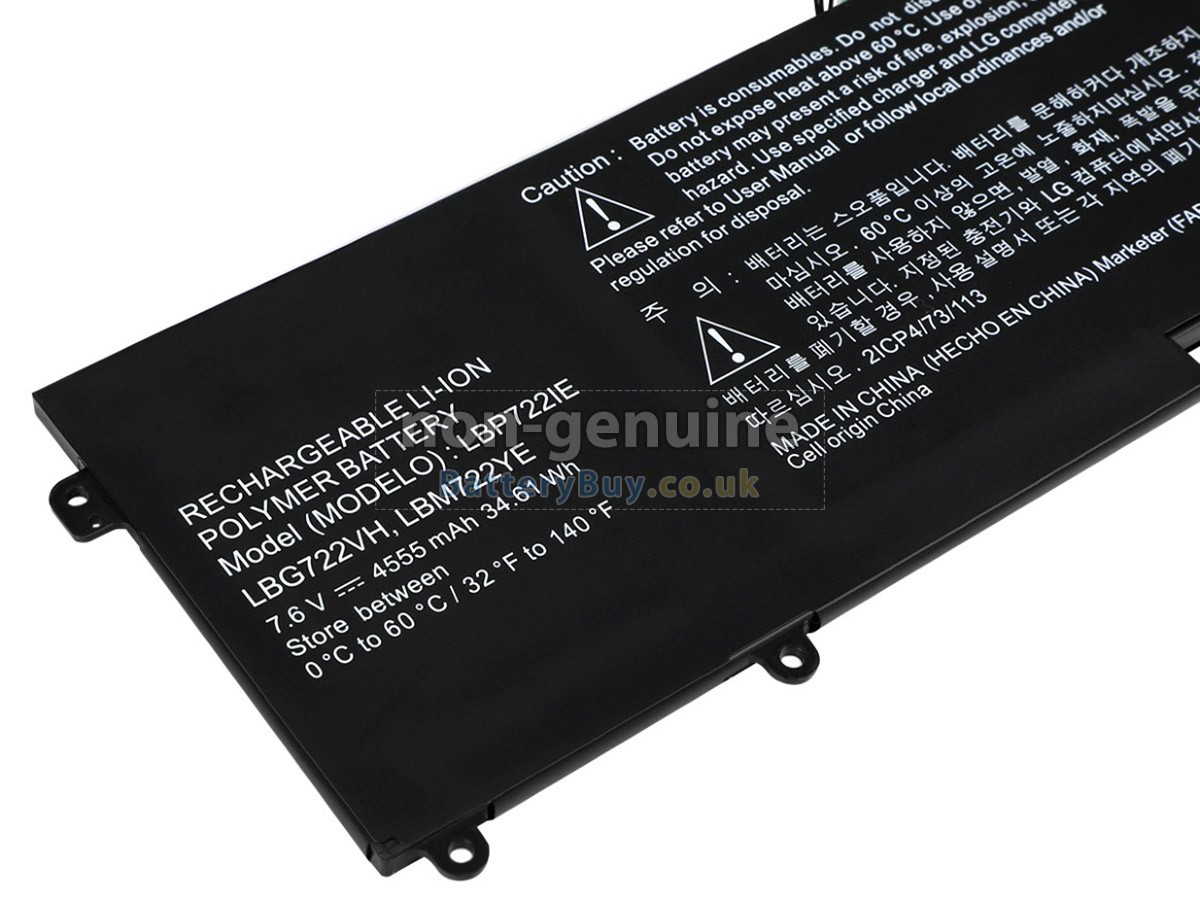 BatteryBuy.co.uk is your best choice of high quality LG laptop batteries! The brand new 34.61Wh(2 cells) replacement LG GRAM 14Z960-G.AH51A2 Li-Polymer battery is made with superior quality cells from Samsung, Panasonic and LG to ensure the best performance. LG GRAM 14Z960-G.AH51A2 battery case is made of non-flammable and durable plastic, which is fire-retarded and non-perishable when dropped from low heights.