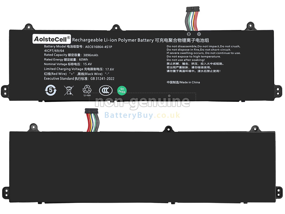 BatteryBuy.co.uk is your best choice of high quality Mechrevo laptop batteries! The brand new 62Wh(4 cells) replacement Mechrevo AEC616864-4S1P Li-Polymer battery is made with superior quality cells from Samsung, Panasonic and LG to ensure the best performance. Mechrevo AEC616864-4S1P battery case is made of non-flammable and durable plastic, which is fire-retarded and non-perishable when dropped from low heights.