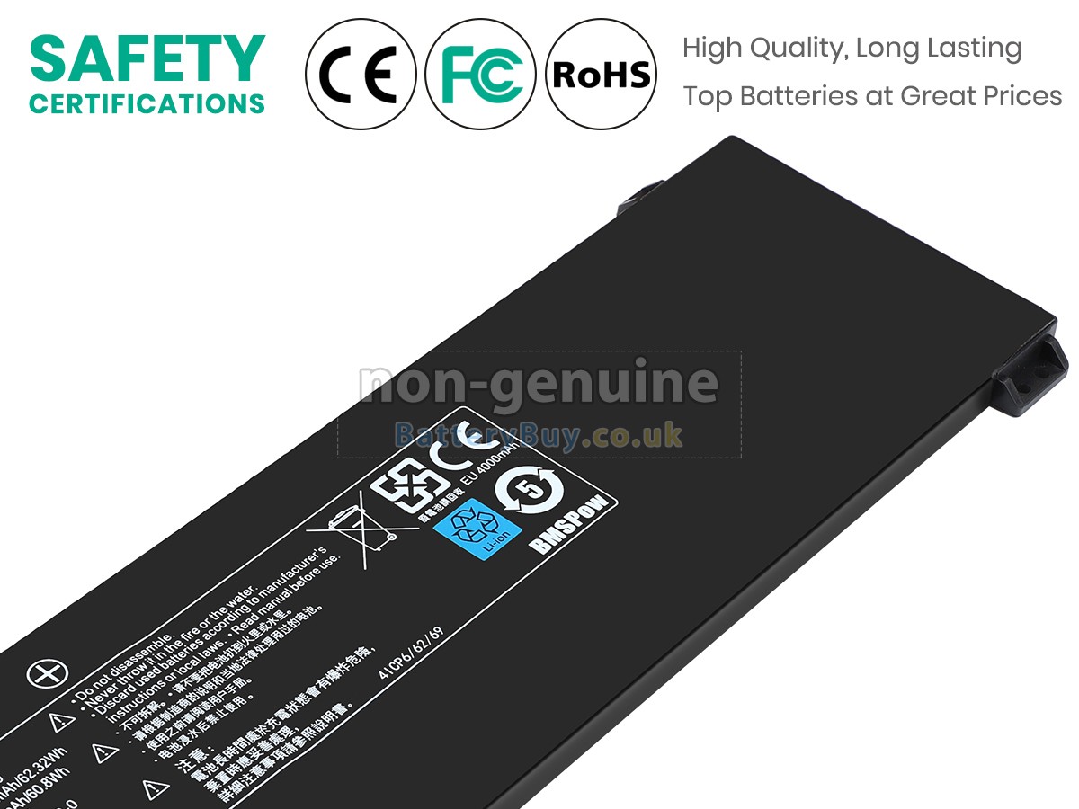 BatteryBuy.co.uk is your best choice of high quality Mechrevo laptop batteries! The brand new 62.32Wh(4 cells) replacement Mechrevo BATRGKIDY3-4102 Li-Polymer battery is made with superior quality cells from Samsung, Panasonic and LG to ensure the best performance. Mechrevo BATRGKIDY3-4102 battery case is made of non-flammable and durable plastic, which is fire-retarded and non-perishable when dropped from low heights.