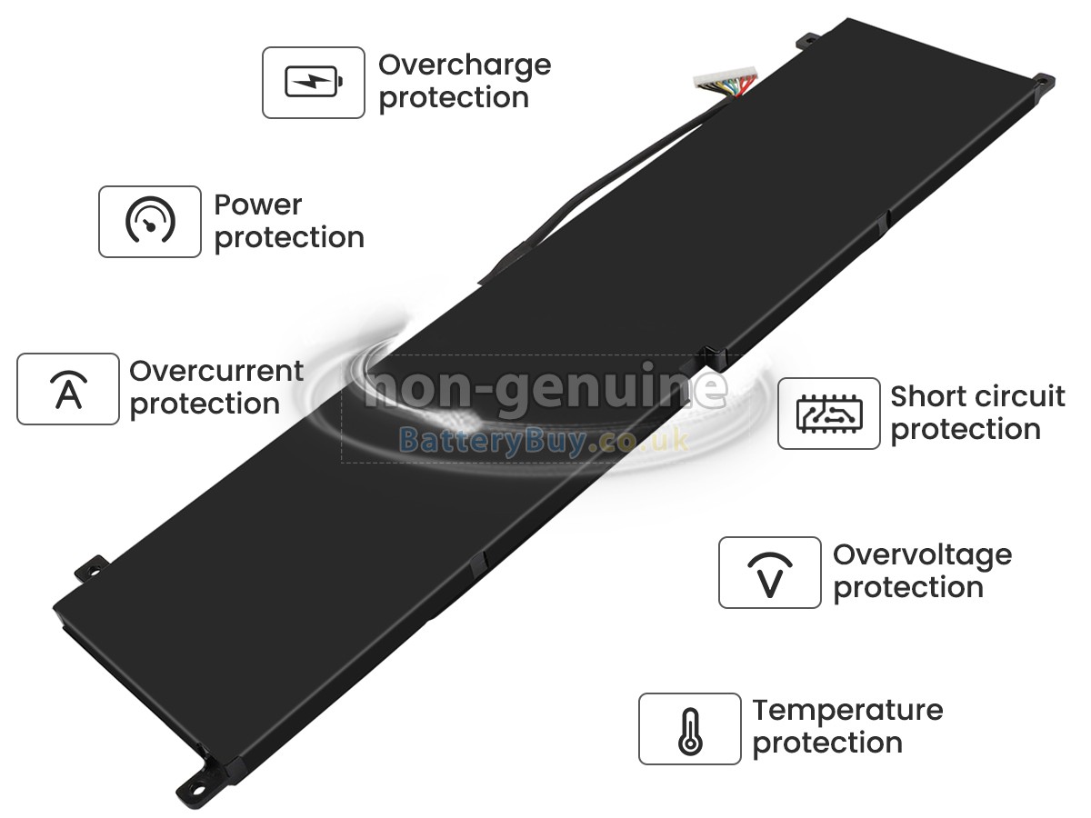 BatteryBuy.co.uk is your best choice of high quality MSI laptop batteries! The brand new 99.99Wh(4 cells) replacement MSI BTY-M6M2 Li-Polymer battery is made with superior quality cells from Samsung, Panasonic and LG to ensure the best performance. MSI BTY-M6M2 battery case is made of non-flammable and durable plastic, which is fire-retarded and non-perishable when dropped from low heights.