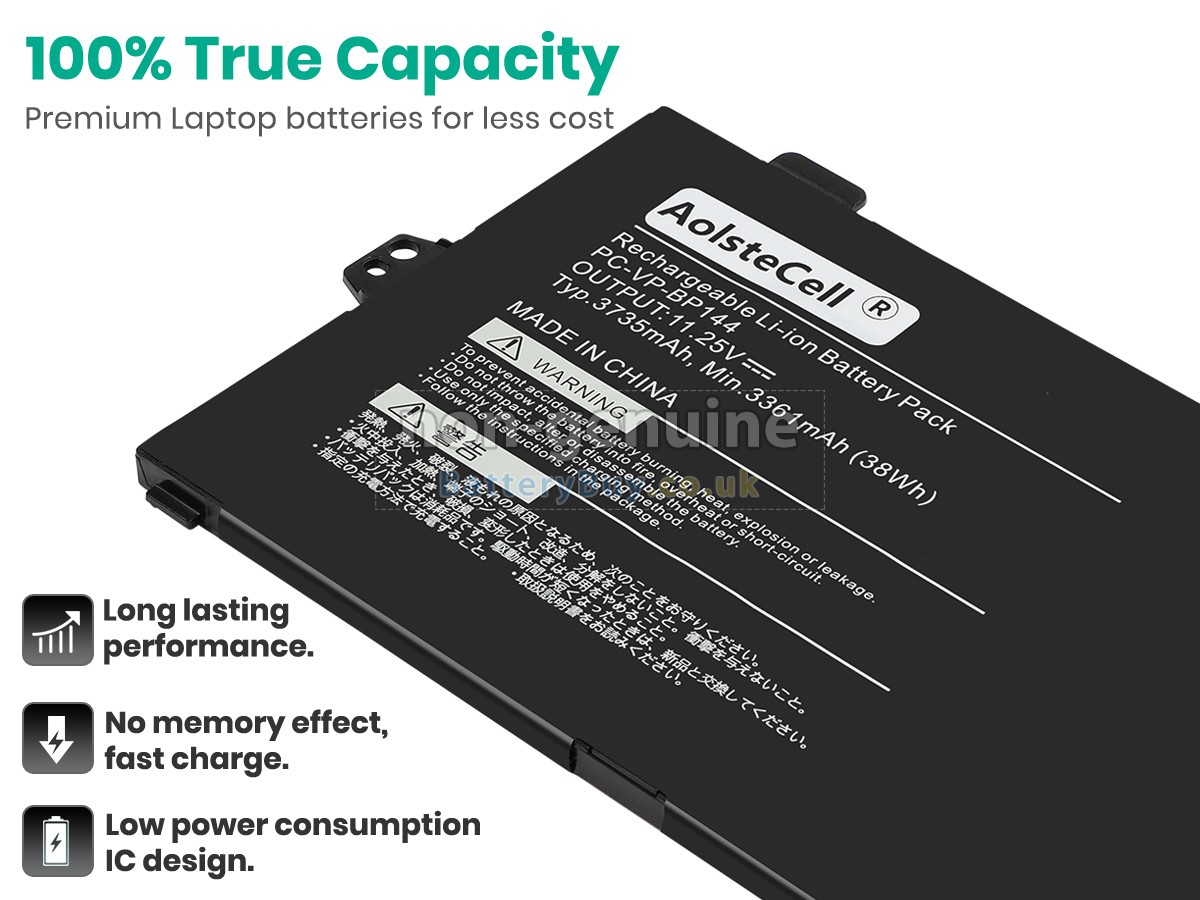 BatteryBuy.co.uk is your best choice of high quality NEC laptop batteries! The brand new 3735mAh(3 cells) replacement NEC PC-VP-BP144(3ICP5/54/90) Li-Polymer battery is made with superior quality cells from Samsung, Panasonic and LG to ensure the best performance. NEC PC-VP-BP144(3ICP5/54/90) battery case is made of non-flammable and durable plastic, which is fire-retarded and non-perishable when dropped from low heights.