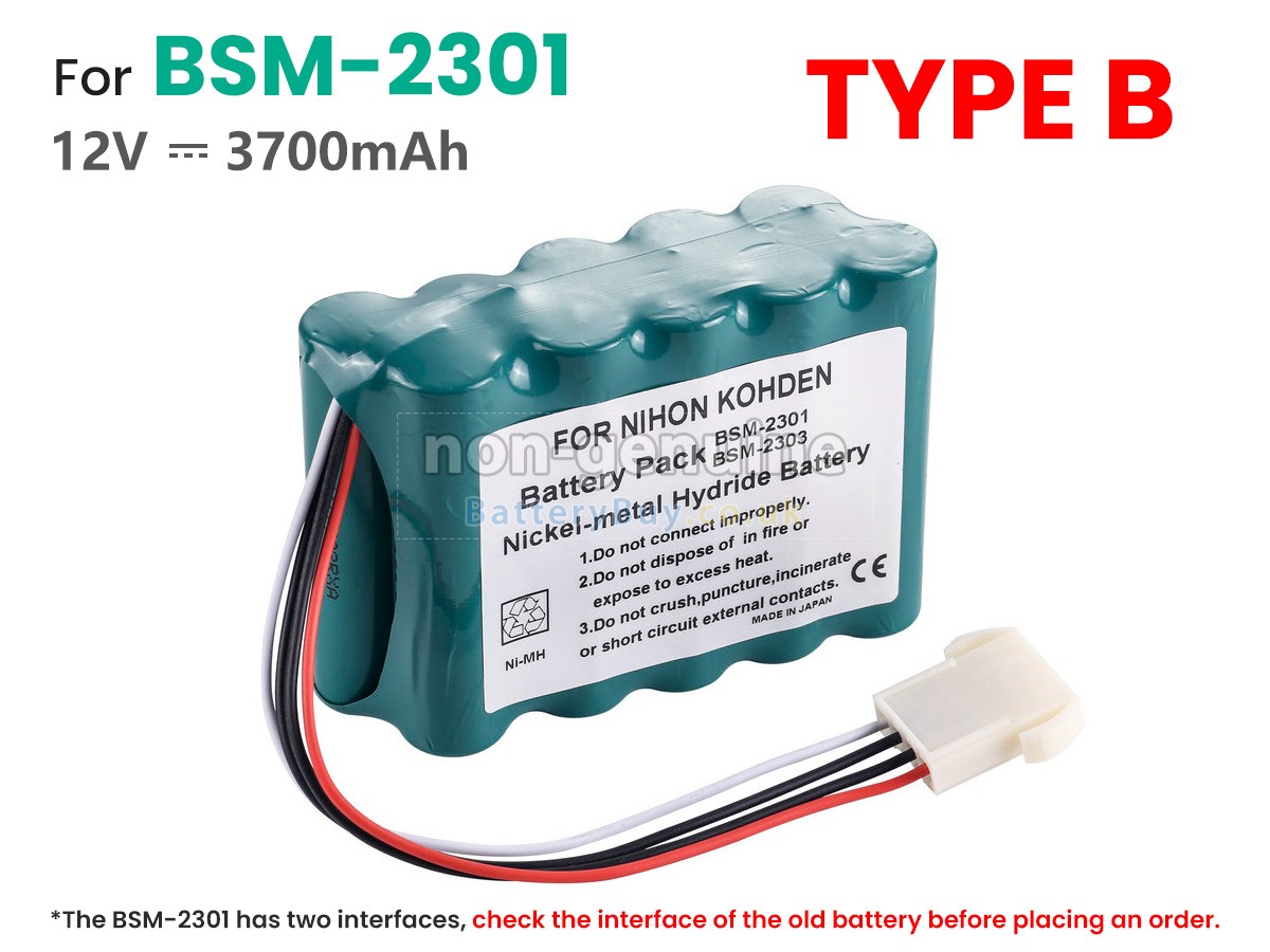 BatteryBuy.co.uk is your best choice of high quality Nihon Kohden batteries! The brand new 3700mAh(10 cells) replacement Nihon Kohden BSM-2301C Ni-MH battery is made with superior quality cells from Samsung, Panasonic and LG to ensure the best performance. Nihon Kohden BSM-2301C battery case is made of non-flammable and durable plastic, which is fire-retarded and non-perishable when dropped from low heights.