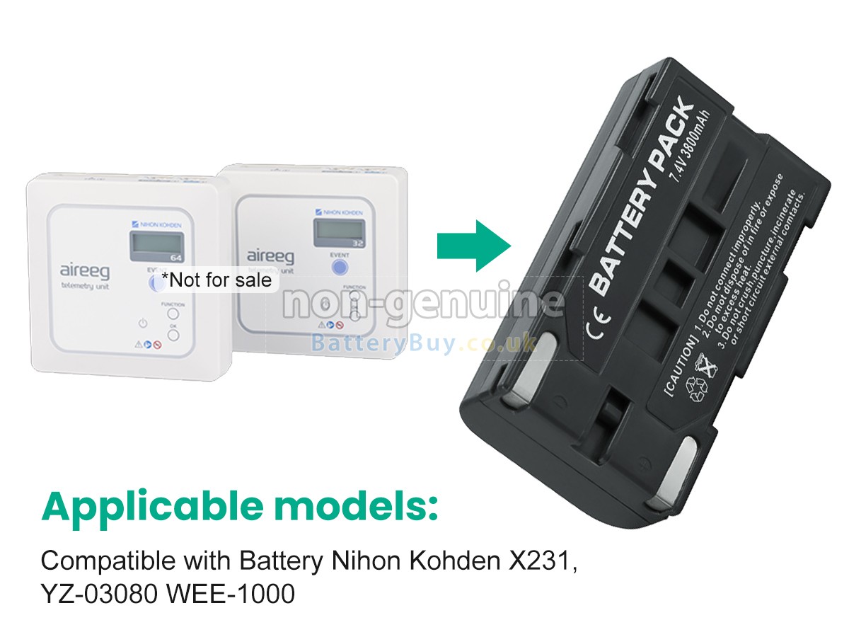 BatteryBuy.co.uk is your best choice of high quality Nihon Kohden batteries! The brand new 3800mAh(2 cells) replacement Nihon Kohden ZB-101AA/AK Li-ion battery is made with superior quality cells from Samsung, Panasonic and LG to ensure the best performance. Nihon Kohden ZB-101AA/AK battery case is made of non-flammable and durable plastic, which is fire-retarded and non-perishable when dropped from low heights.