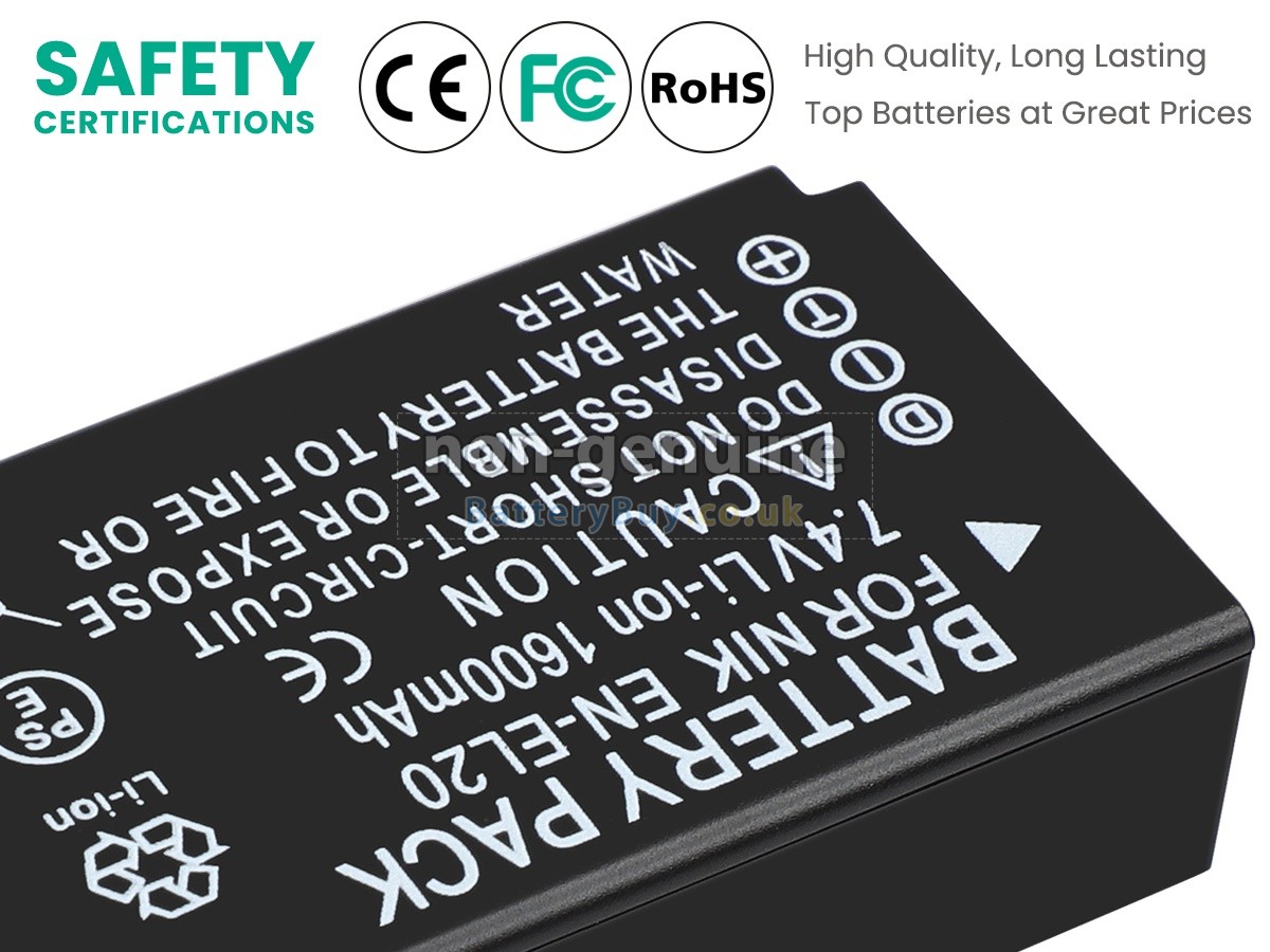 BatteryBuy.co.uk is your best choice of high quality Nikon batteries! The brand new 1600mAh(2 cells) replacement Nikon 1 S1 Li-ion battery is made with superior quality cells from Samsung, Panasonic and LG to ensure the best performance. Nikon 1 S1 battery case is made of non-flammable and durable plastic, which is fire-retarded and non-perishable when dropped from low heights.