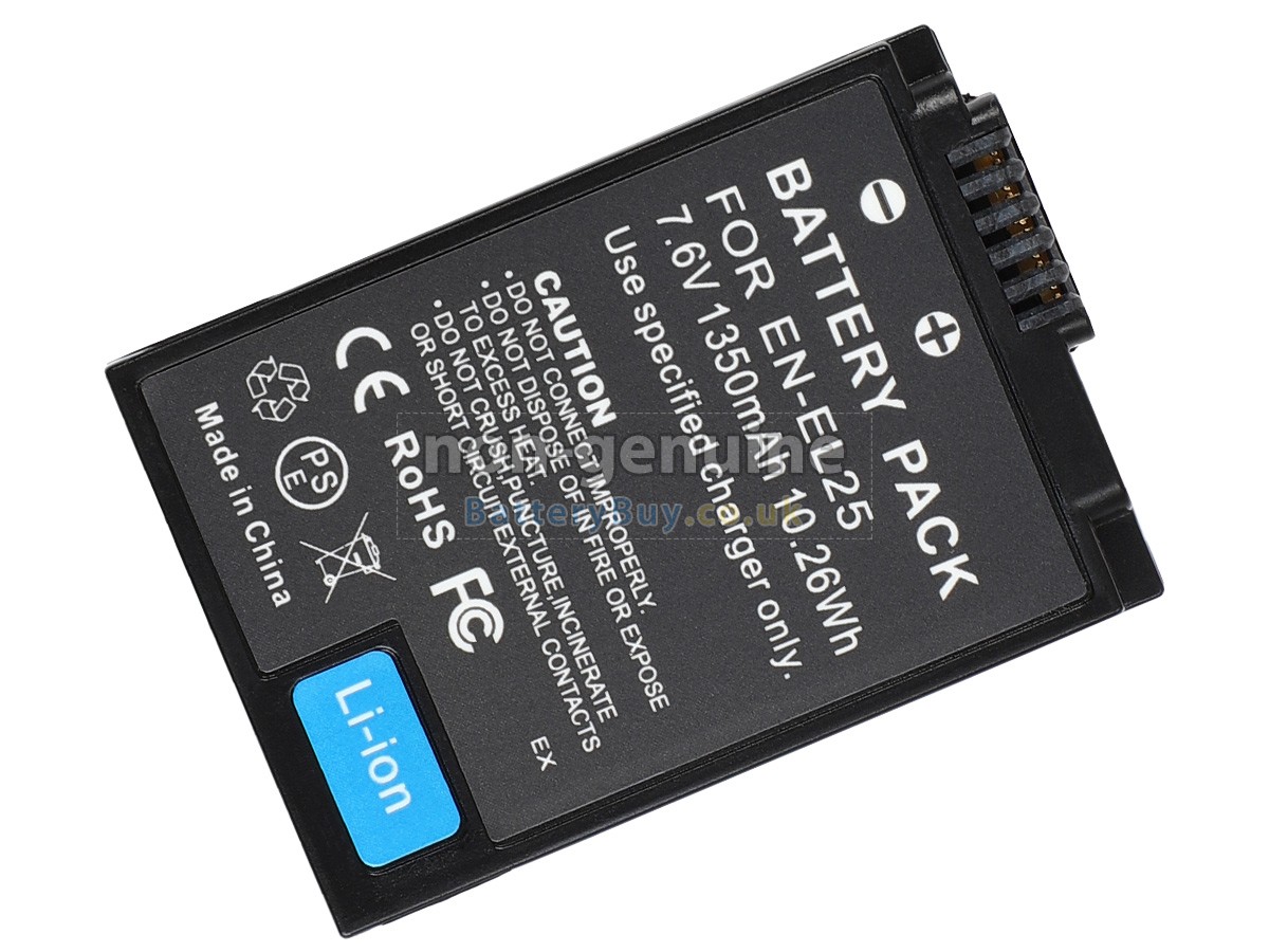BatteryBuy.co.uk is your best choice of high quality Nikon batteries! The brand new 11.7Wh(2 cells) replacement Nikon EN-EL25 Li-ion battery is made with superior quality cells from Samsung, Panasonic and LG to ensure the best performance. Nikon EN-EL25 battery case is made of non-flammable and durable plastic, which is fire-retarded and non-perishable when dropped from low heights.