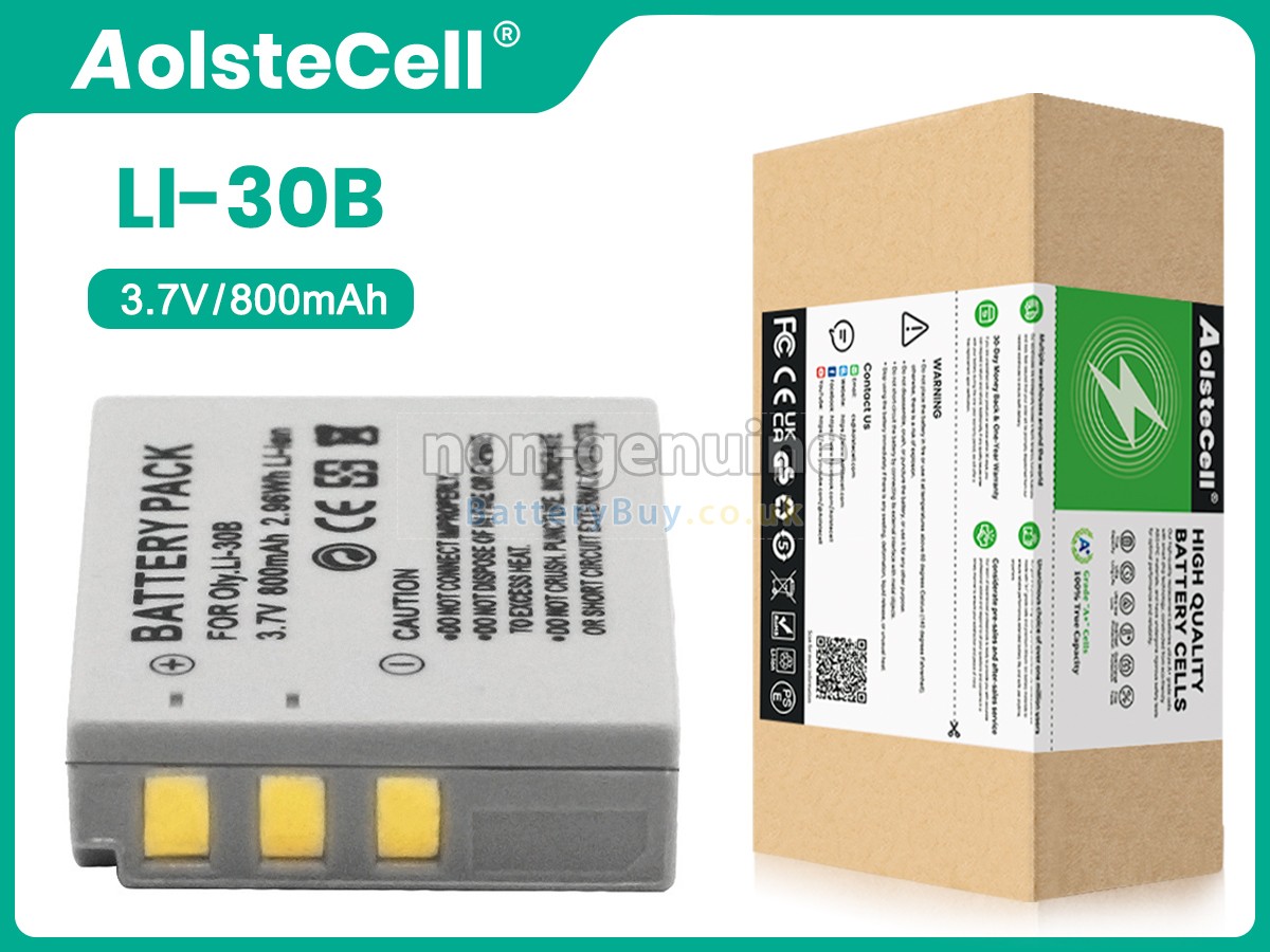 BatteryBuy.co.uk is your best choice of high quality Olympus batteries! The brand new 800mAh(1 cells) replacement Olympus LI-30B Li-ion battery is made with superior quality cells from Samsung, Panasonic and LG to ensure the best performance. Olympus LI-30B battery case is made of non-flammable and durable plastic, which is fire-retarded and non-perishable when dropped from low heights.