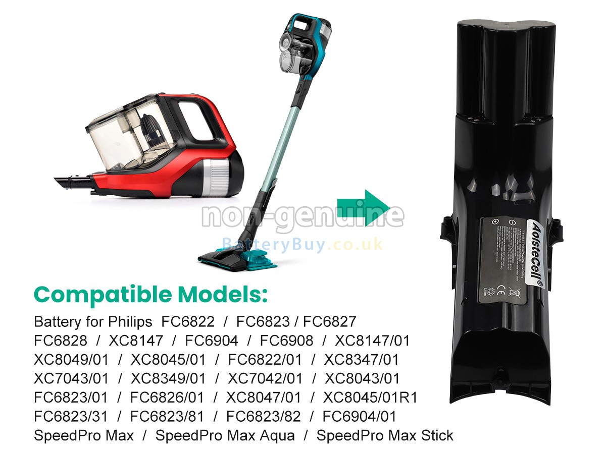 A: First, find out your old battery part number (e.g. 'Philips 300000517631') or the model name of vacuum cleaner and then match with our product compatibility table. Second, please compare your old battery with our product images to make sure their shapes are the same. Lastly, check the voltage (rating) is the same as the old one. For more details please click How to find one correct battery for my Vacuum Cleaners?