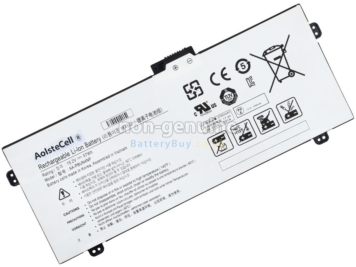 BatteryBuy.co.uk is your best choice of high quality Samsung laptop batteries! The brand new 57Wh(4 cells) replacement Samsung AA-PBUN4NP Li-Polymer battery is made with superior quality cells from Samsung, Panasonic and LG to ensure the best performance. Samsung AA-PBUN4NP battery case is made of non-flammable and durable plastic, which is fire-retarded and non-perishable when dropped from low heights.