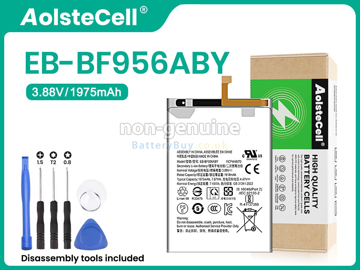 BatteryBuy.co.uk is your best choice of high quality Samsung batteries! The brand new 1975mAh(1 cells) replacement Samsung EB-BF956ABY Li-ion battery is made with superior quality cells from Samsung, Panasonic and LG to ensure the best performance. Samsung EB-BF956ABY battery case is made of non-flammable and durable plastic, which is fire-retarded and non-perishable when dropped from low heights.