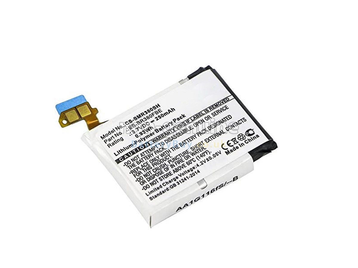 BatteryBuy.co.uk is your best choice of high quality Samsung batteries for watches! The brand new 0.93Wh(1 cells) replacement Samsung EB-BR380FBE Li-Polymer battery is made with superior quality cells from Samsung, Panasonic and LG to ensure the best performance. Samsung EB-BR380FBE battery case is made of non-flammable and durable plastic, which is fire-retarded and non-perishable when dropped from low heights.