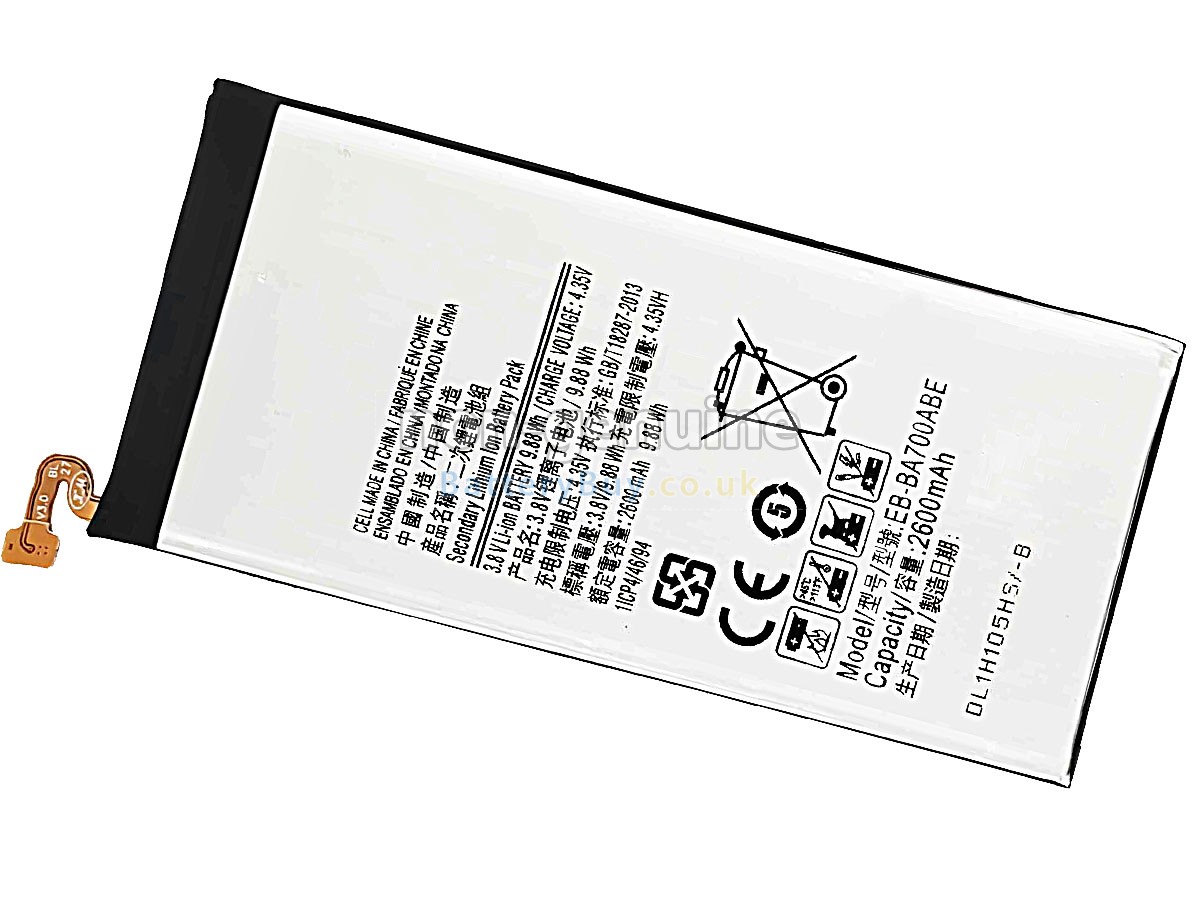 BatteryBuy.co.uk is your best choice of high quality Samsung batteries! The brand new 2600mAh(1 cells) replacement Samsung GALAXY A7 SM-A700FD Li-ion battery is made with superior quality cells from Samsung, Panasonic and LG to ensure the best performance. Samsung GALAXY A7 SM-A700FD battery case is made of non-flammable and durable plastic, which is fire-retarded and non-perishable when dropped from low heights.