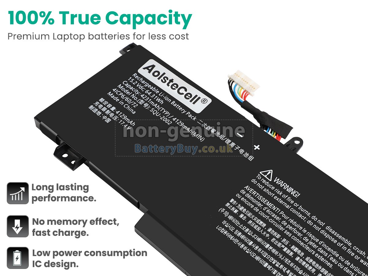 BatteryBuy.co.uk is your best choice of high quality Thunderobot laptop batteries! The brand new 64.31Wh(4 cells) replacement Thunderobot 916QA139H Li-Polymer battery is made with superior quality cells from Samsung, Panasonic and LG to ensure the best performance. Thunderobot 916QA139H battery case is made of non-flammable and durable plastic, which is fire-retarded and non-perishable when dropped from low heights.