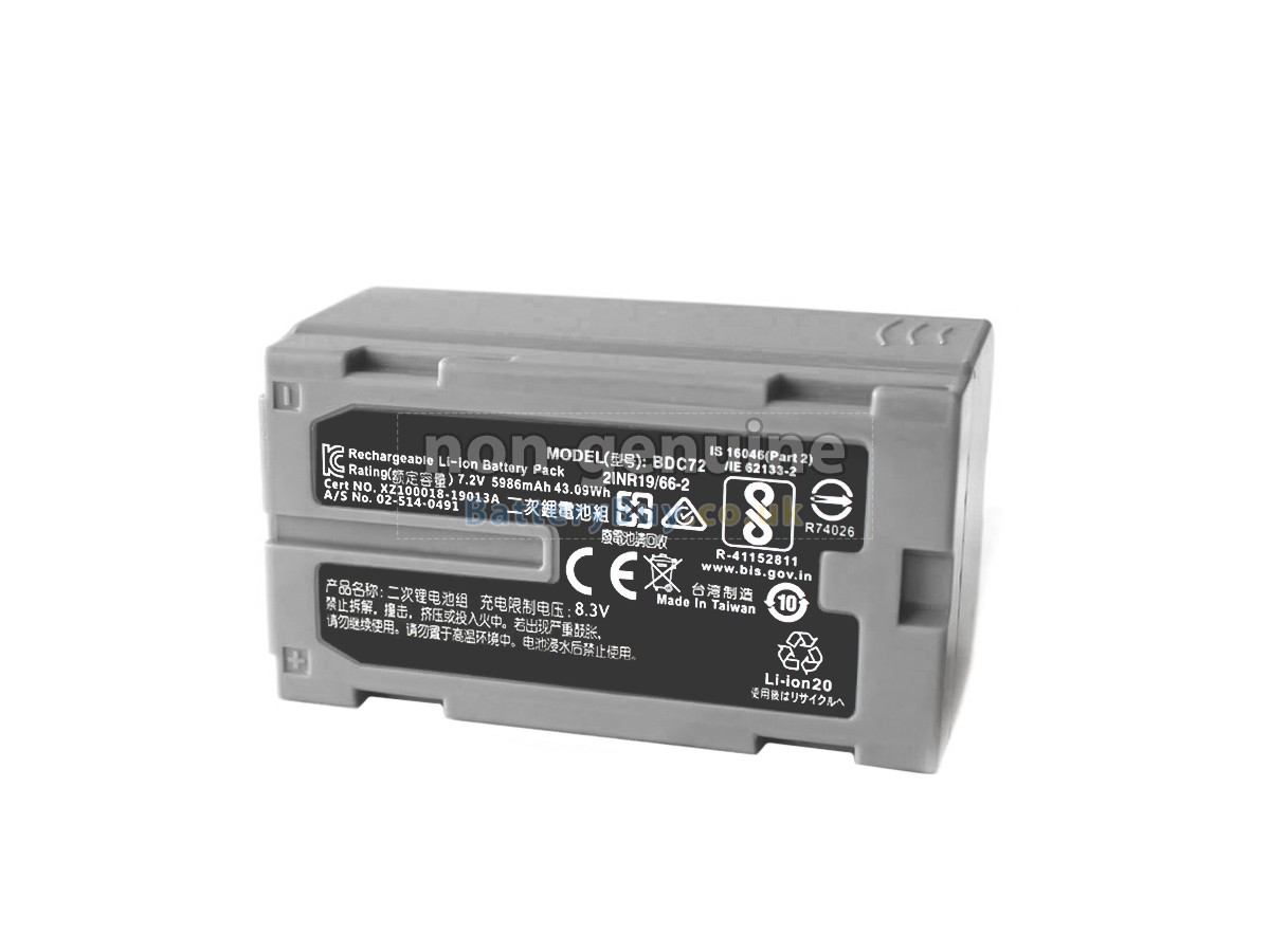 BatteryBuy.co.uk is your best choice of high quality Topcon batteries! The brand new 5986mAh(4 cells) replacement Topcon BDC72 Li-ion battery is made with superior quality cells from Samsung, Panasonic and LG to ensure the best performance. Topcon BDC72 battery case is made of non-flammable and durable plastic, which is fire-retarded and non-perishable when dropped from low heights.