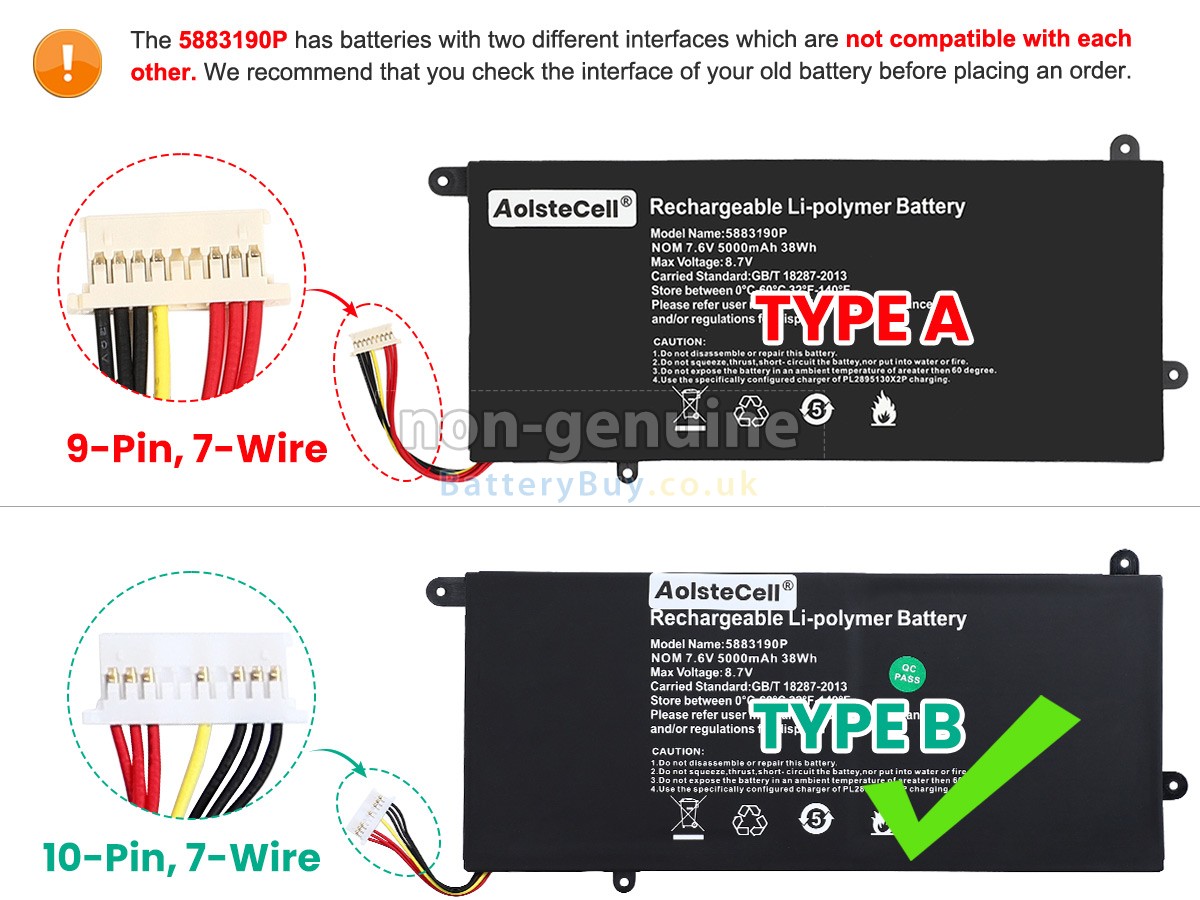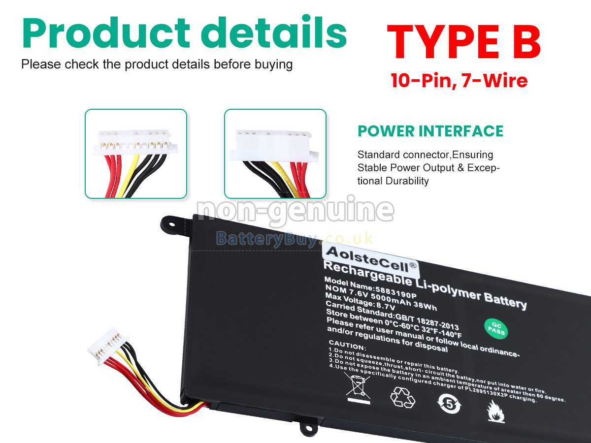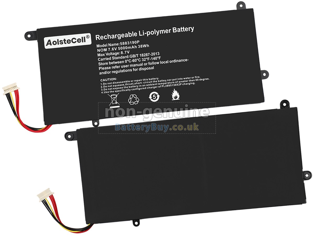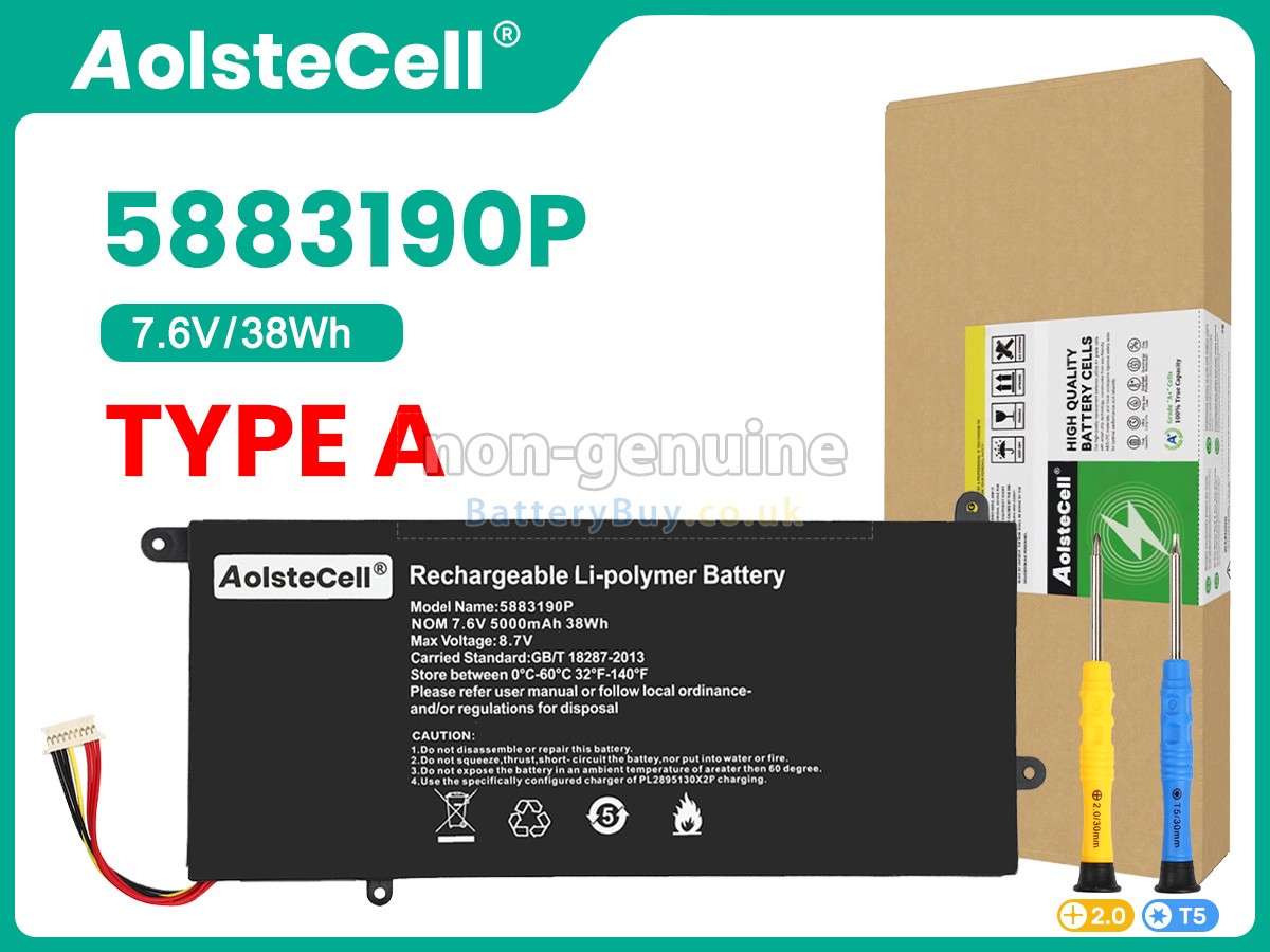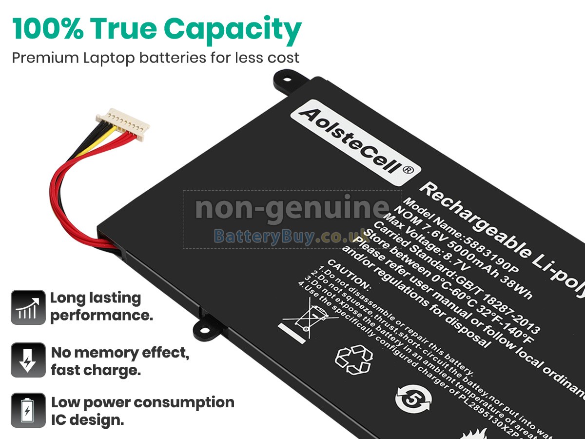 BatteryBuy.co.uk is your best choice of high quality Vastking laptop batteries! The brand new 38Wh(2 cells) replacement Vastking 5883190P Li-Polymer battery is made with superior quality cells from Samsung, Panasonic and LG to ensure the best performance. Vastking 5883190P battery case is made of non-flammable and durable plastic, which is fire-retarded and non-perishable when dropped from low heights.