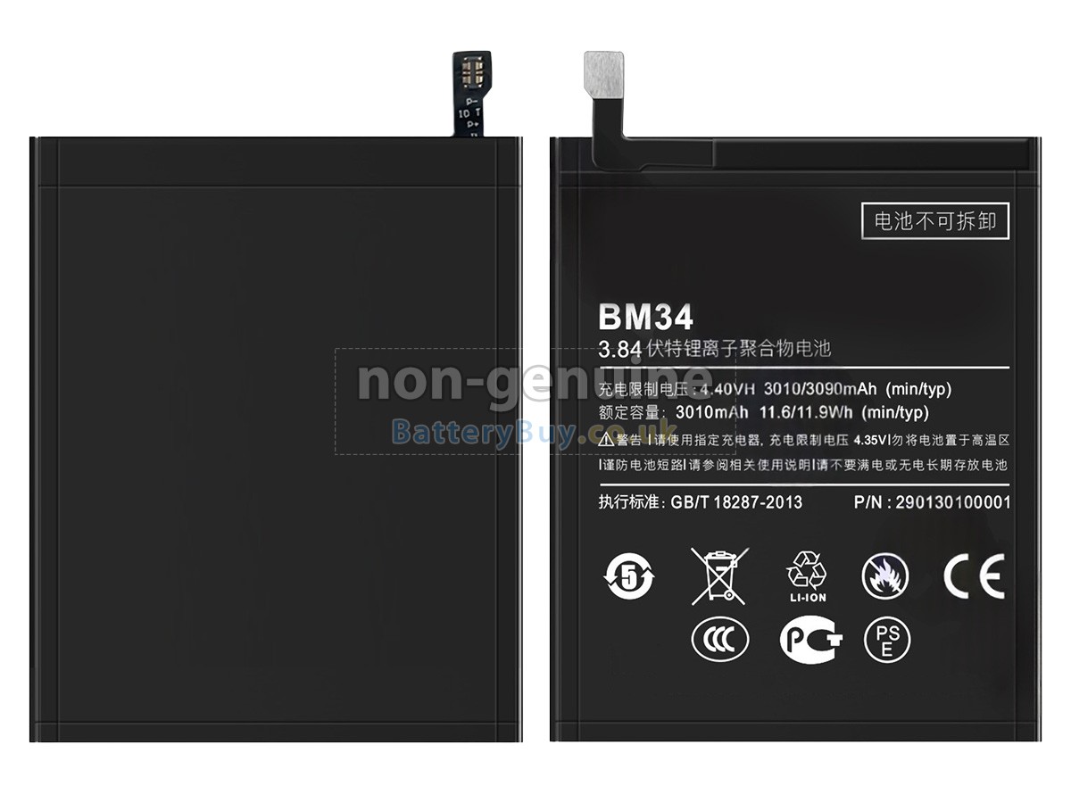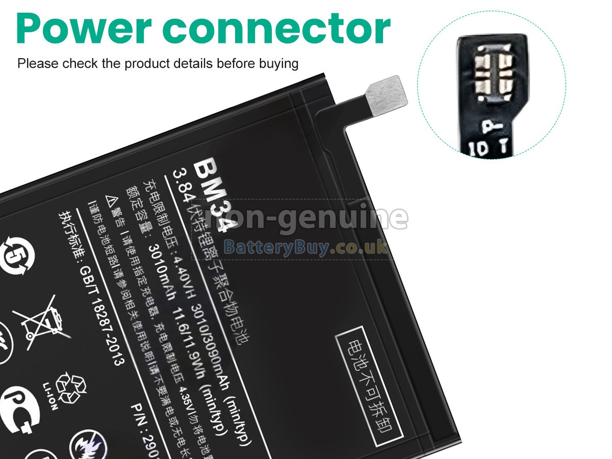BatteryBuy.co.uk is your best choice of high quality XiaoMi batteries! The brand new 3090mAh(1 cells) replacement XiaoMi BM34 Li-ion battery is made with superior quality cells from Samsung, Panasonic and LG to ensure the best performance. XiaoMi BM34 battery case is made of non-flammable and durable plastic, which is fire-retarded and non-perishable when dropped from low heights.