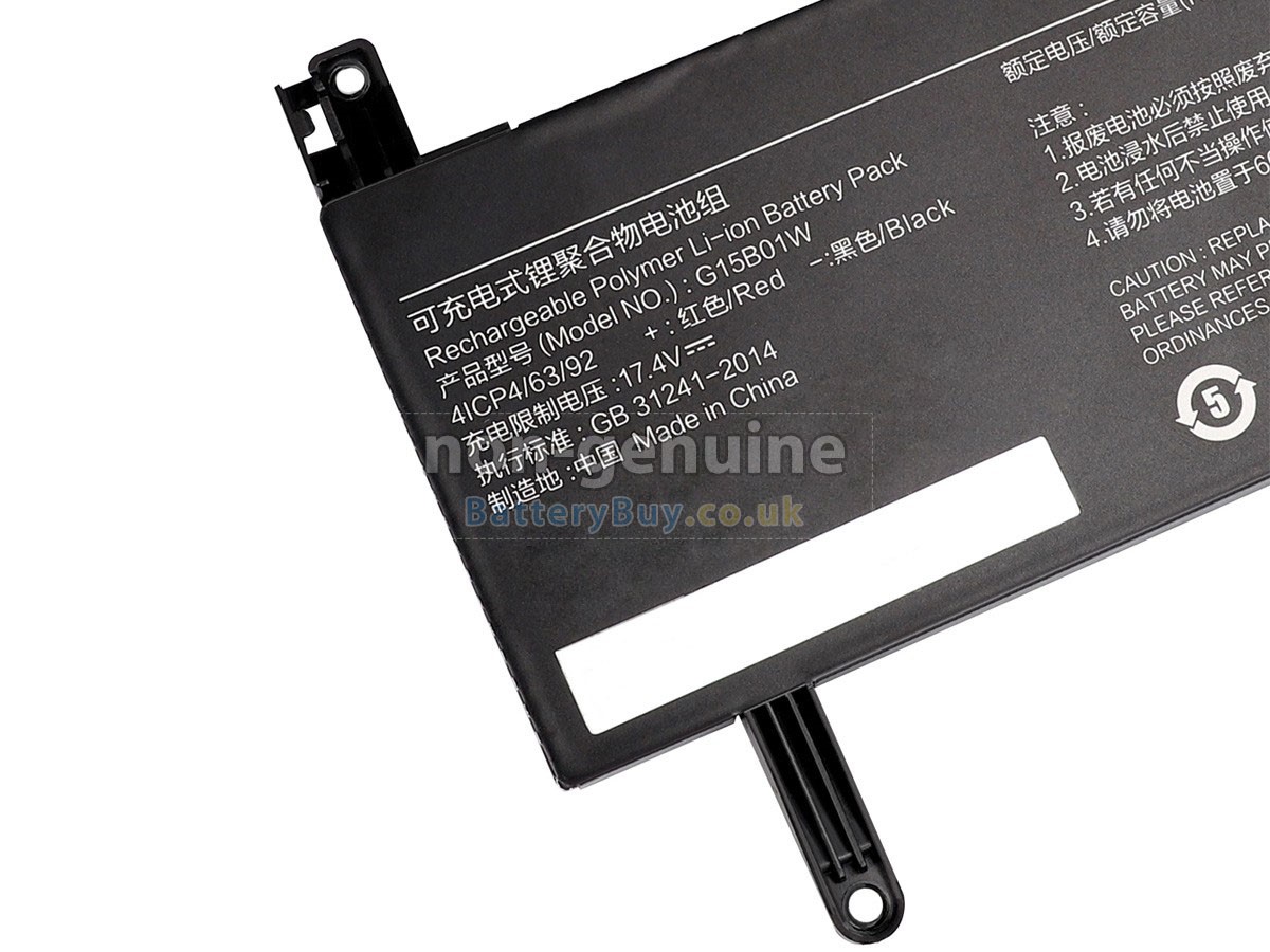 BatteryBuy.co.uk is your best choice of high quality XiaoMi laptop batteries! The brand new 55.02Wh(4 cells) replacement XiaoMi G15B01W(4ICP4/63/92) Li-Polymer battery is made with superior quality cells from Samsung, Panasonic and LG to ensure the best performance. XiaoMi G15B01W(4ICP4/63/92) battery case is made of non-flammable and durable plastic, which is fire-retarded and non-perishable when dropped from low heights.