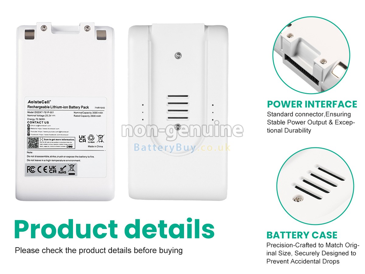BatteryBuy.co.uk is your best choice of high quality XiaoMi batteries for Vacuum Cleaners! The brand new 70.56Wh(7 cells) replacement XiaoMi G9 PLUS Li-ion battery is made with superior quality cells from Samsung, Panasonic and LG to ensure the best performance. XiaoMi G9 PLUS battery case is made of non-flammable and durable plastic, which is fire-retarded and non-perishable when dropped from low heights.