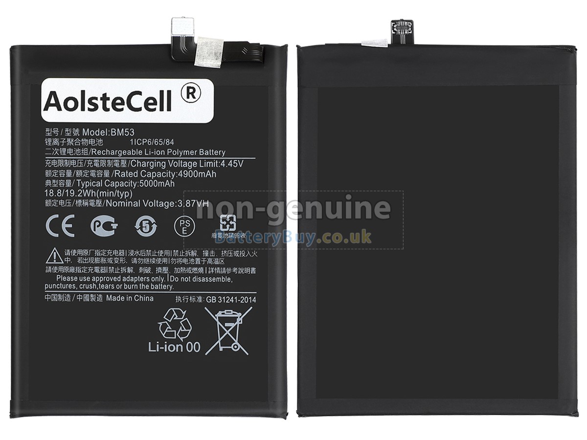 BatteryBuy.co.uk is your best choice of high quality XiaoMi batteries! The brand new 19.3Wh(1 cells) replacement XiaoMi M2007J3SP Li-Polymer battery is made with superior quality cells from Samsung, Panasonic and LG to ensure the best performance. XiaoMi M2007J3SP battery case is made of non-flammable and durable plastic, which is fire-retarded and non-perishable when dropped from low heights.