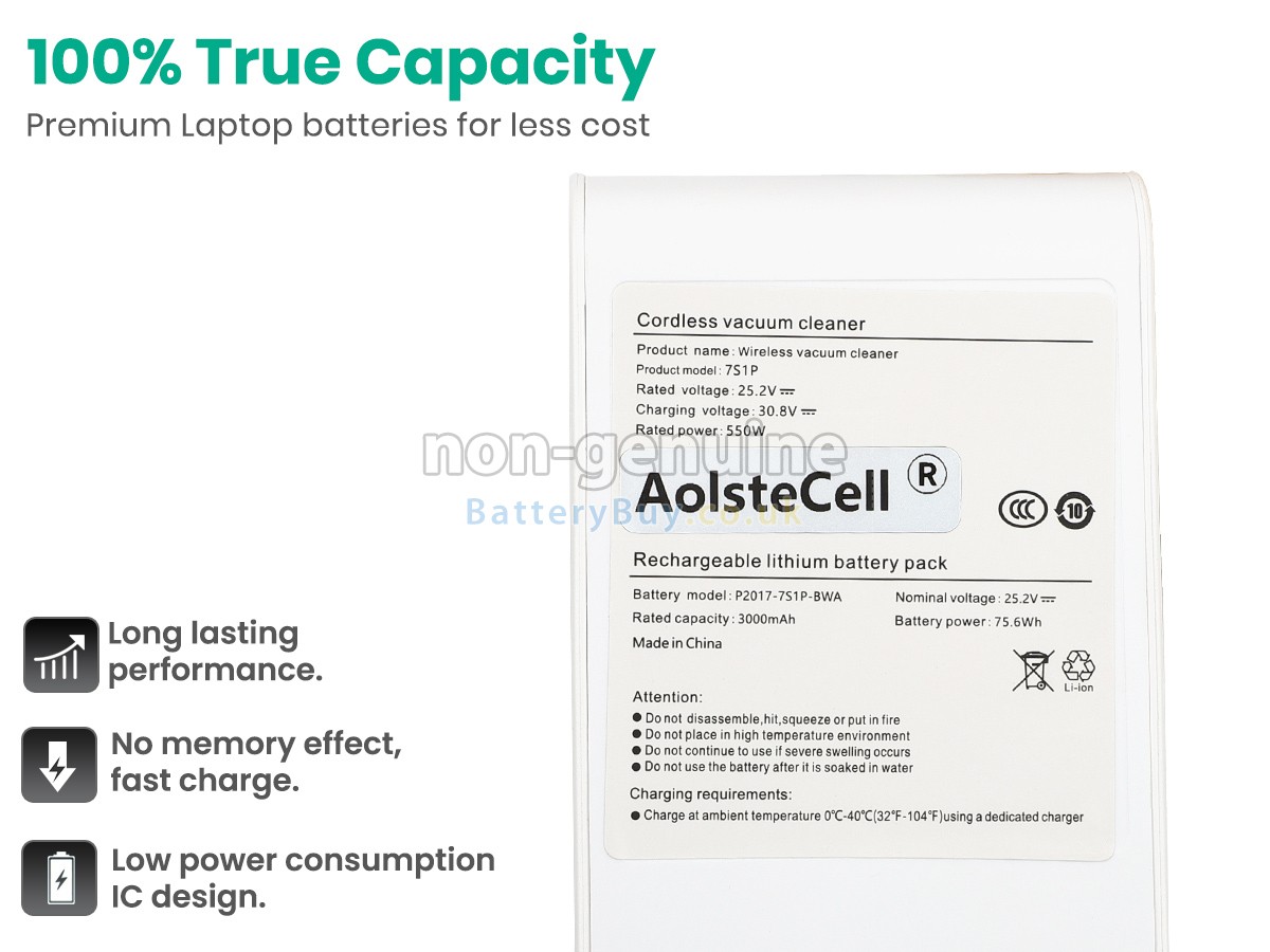 All our high quality replacement vacuum cleaner batteries for XiaoMi MJWXCQ04ZM come with a 1-year warranty. Warranty is applicable if the buyer has installed the battery properly in the device and has treated the battery correctly.