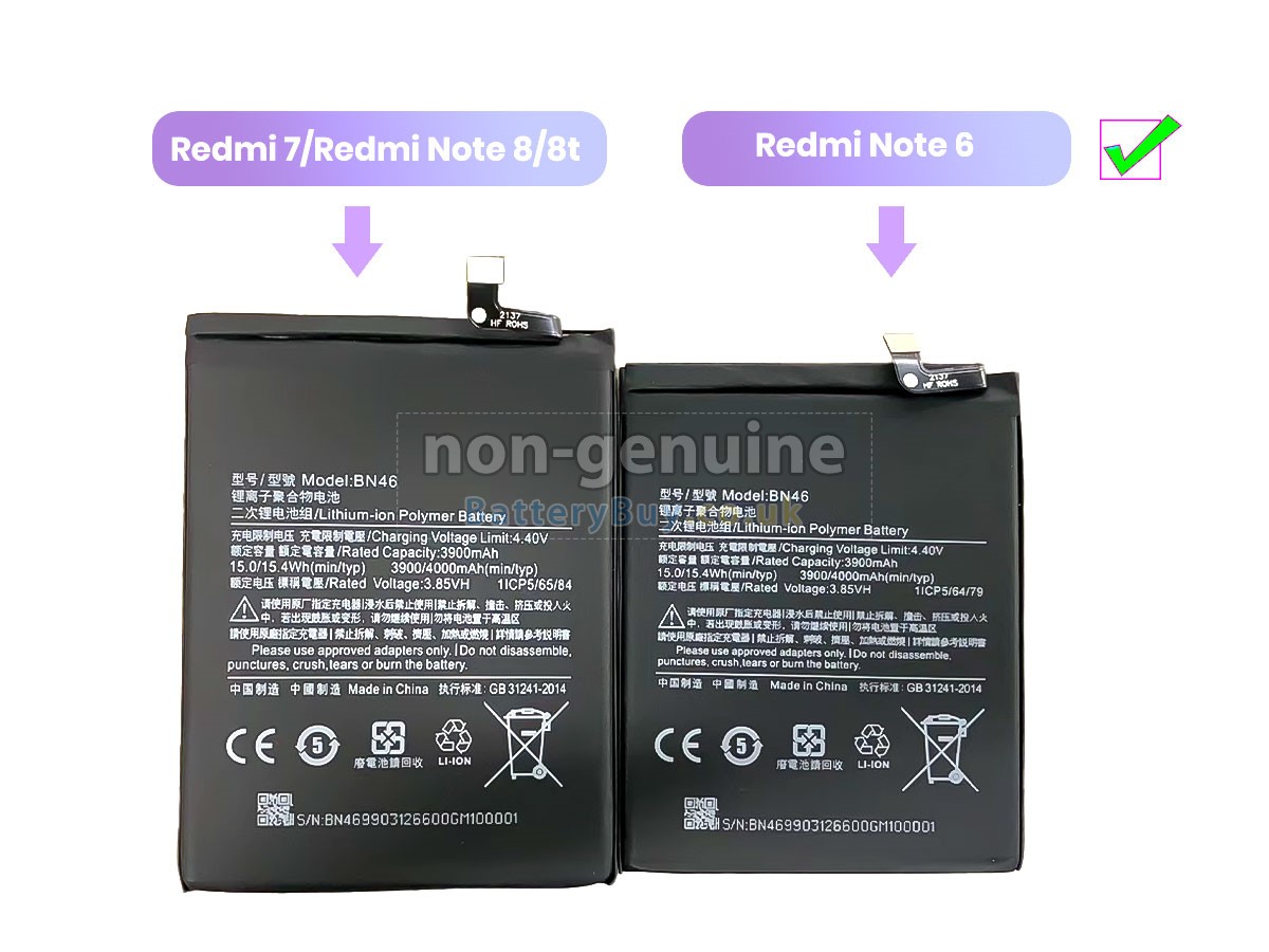 A: First, find out your old battery part number (e.g. 'XiaoMi REDMI NOTE 6') or the model name and then match with our product compatibility table. Second, please compare your old battery with our product images to make sure their shapes are the same. Lastly, check the voltage (rating) is the same as the old one.