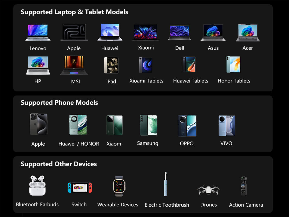 Built for power users, this 20000mAh power bank delivers up to 100W high-speed charging, supporting PD 3.0 and multiple fast-charging protocols for wide compatibility. Whether you’re charging a laptop, tablet, or smartphone, it provides stable, efficient power when you need it most. Laboratory testing shows it can charge a MacBook Air (M3) to 50% or an iPhone 17 Pro to 60% in just 30 minutes, making it an ideal fast-charging power bank for work, travel, and daily use.